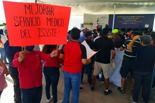 «Hechos, no palabras, no se olvide de dónde viene», le gritaron durante la apertura del evento para exigir mejoras al servicio del ISSSTE en la zona norte del Estado, ante la sorpresa de funcionarios del presidium.