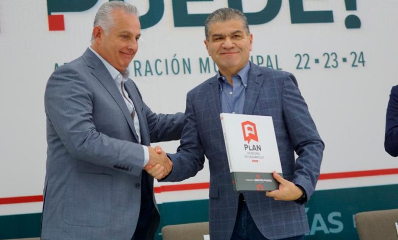 El gobernador Miguel Ángel Riquelme Solís acompañó al Alcalde de Torreón, Román Alberto Cepeda González, en la presentación del Plan Municipal de Desarrollo.