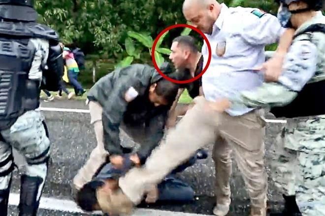 En particular, la CNDH documentó la saña contra un migrante que fue golpeado por cuatro agentes, uno de ellos Aldo Iván Robledo Páez, (AR4), quien le dio una patada en el rostro cuando ya estaba tirado en el asfalto de la carretera federal 200 en el tramo Tapachula-Huixtla.