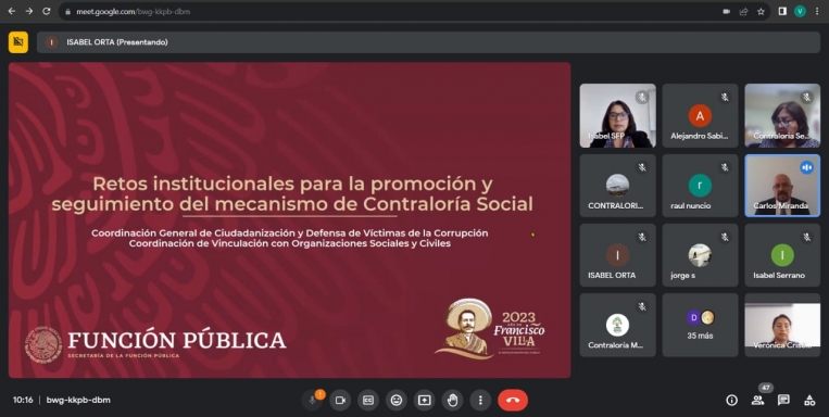 En seguimiento al convenio de colaboración celebrado por la Secretaría de la Función Pública con el Gobierno del Estado de Coahuila, una de las actividades de la Comisión Permanente de Contralores Estado – Municipios fue la capacitación virtual con el tema “Normatividad en Contraloría Social” a los enlaces de las 38 Presidencias Municipales en Estado.