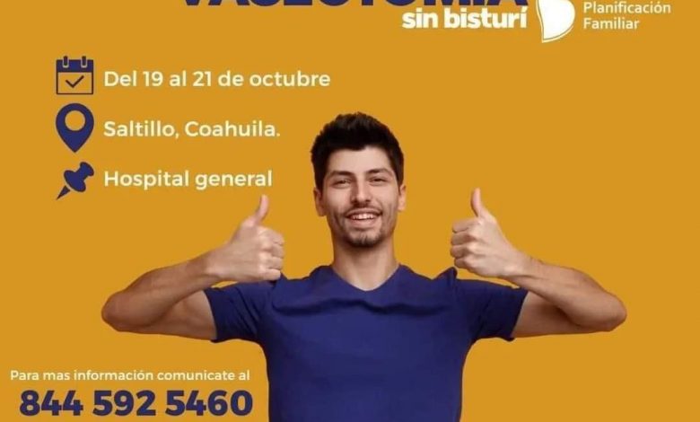 Durante esta jornada de vasectomías en Saltillo se espera atender a 90 hombres, 30 por día. Para mayor información y registro, favor de comunicarse al 844 592 5460.