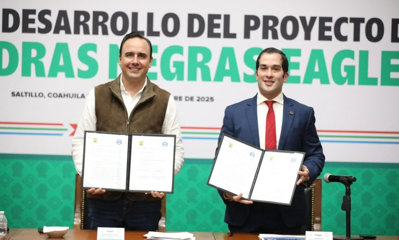 • Gobernador Manolo Jiménez y Aarón Valdés, Mayor de Eagle Pass, firman acuerdo para realizar en conjunto el proyecto
