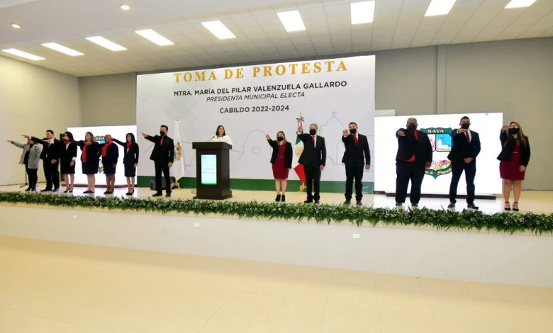 La Alcaldesa de Nava, María del Pilar Valenzuela Gallardo, síndicos y regidores de la Administración Municipal de Nava 2022-2024, tomaron protesta, en evento realizado en el Auditorio Municipal 21 de Febrero, con la presencia de Ricardo Aguirre Gutiérrez, Director general de la Comisión Estatal de Vivienda, representante personal del Gobernador del estado, Miguel Ángel Riquelme Solís.
