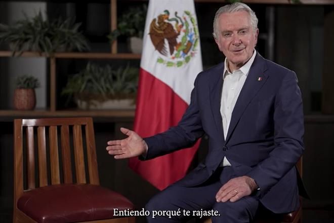 En el video, se ve a Creel en una toma más abierta y muestra la silla vacía destinada a López Obrador.