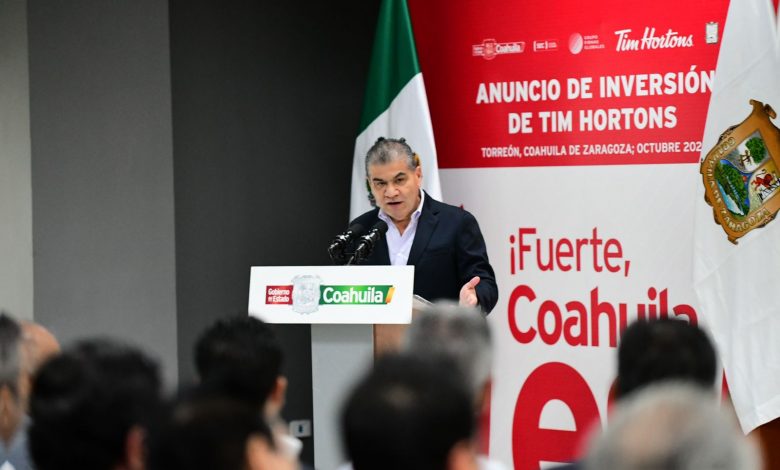El gobernador Miguel Ángel Riquelme Solís anunció el arribo a esta ciudad de la cadena comercial Tim Hortons, que invertirá 160 millones de pesos y arrancará con 6 sucursales, con la meta de llegar a 20.