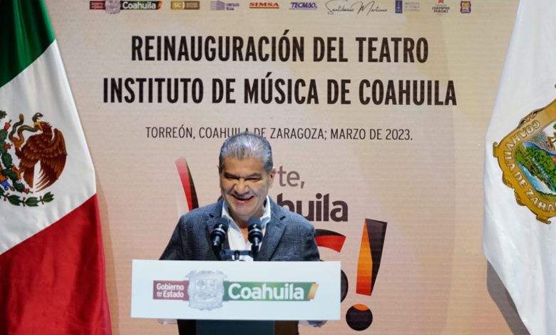 El gobernador Miguel Ángel Riquelme Solís reinauguró el Teatro Instituto de Música (INMUS) de Coahuila, en esta ciudad, edificio en cuya remodelación se invirtieron 2 millones de pesos.