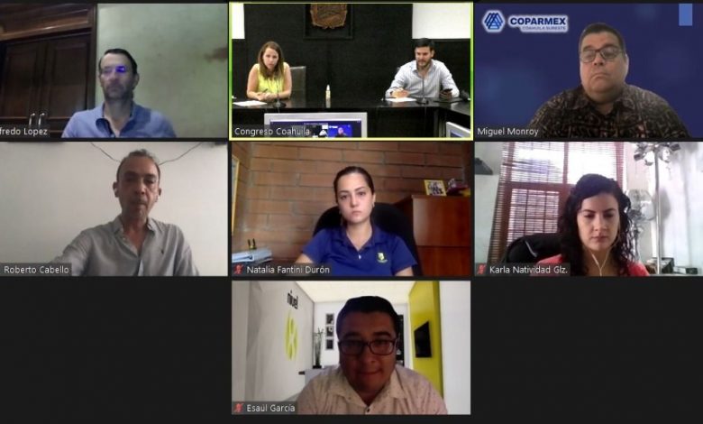 Como parte de la vinculación que existe entre el Congreso del Estado de Coahuila y Coparmex Coahuila Sureste, este miércoles la diputada María Bárbara Cepeda Boehringer y el oficial mayor del Congreso, Gerardo Blanco Guerra sostuvieron una reunión virtual con el C.P. Roberto Cabello Elizondo, presidente de este centro empresarial e integrantes de su consejo directivo y las distintas comisiones de trabajo, en la que establecieron acuerdos para la colaboración con las y los diputados para proponer iniciativas, entre otras acciones con la finalidad de continuar involucrando al sector empresarial en la labor legislativa.