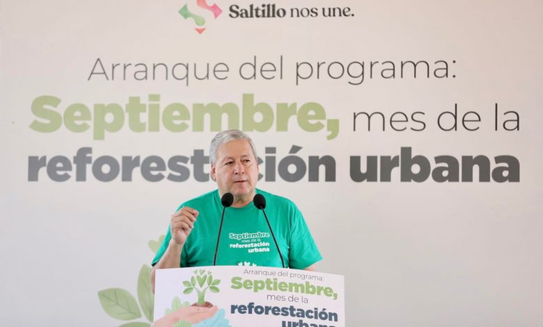 Junto a alumnos, directivos del Instituto Vivir y habitantes de la colonia Tulipanes, el alcalde José María Fraustro Siller realizó la siembra del primer árbol del programa “Septiembre, mes de la reforestación urbana”, en Saltillo.