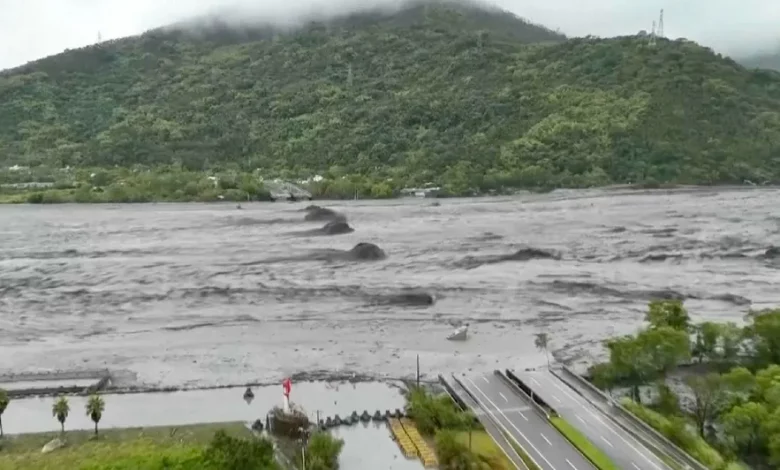En Taiwán, el desbordamiento de un lago natural en el cauce del arroyo Matai’an anegó el municipio de Guangfu entre las 14:50 y las 16:30 hora local (06:50-08:30 GMT) del martes, después de que cediera la presa natural formada por sedimentos.