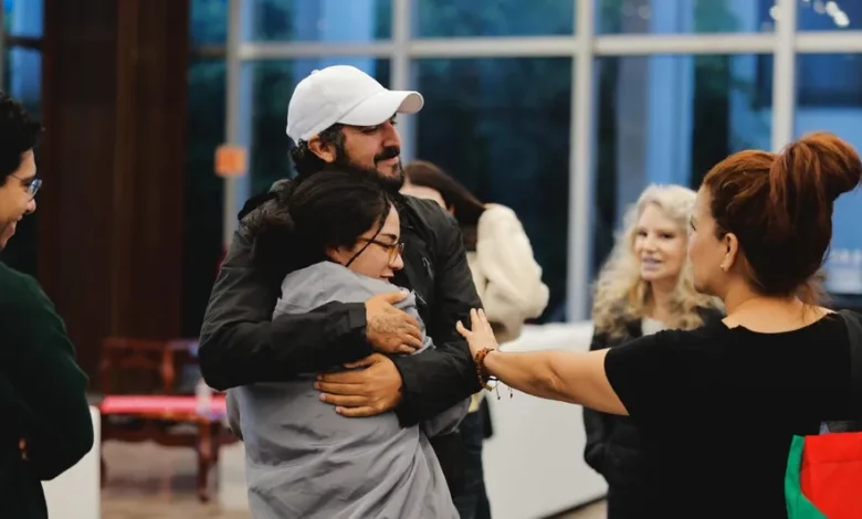 Al grito de «Palestina libre», cantos de «bella ciao» y aplausos, los connacionales fueron recibidos en su país. Los abrazos no se hicieron esperar.