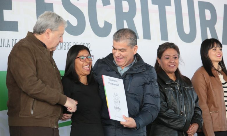 “Hoy, damos muestra de la voluntad que tiene mi Gobierno para poder mejorar las condiciones de vida de miles de familias coahuilenses”, mencionó el gobernador Miguel Ángel Riquelme Solís durante el evento en el que se entregaron 470 escrituras a igual número de familias saltillenses.