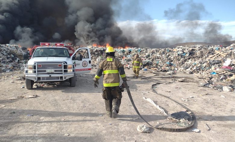 La tarde de este miércoles elementos de Protección Civil de Piedras Negras atendieron el reporte de un fuerte incendio en las inmediaciones del relleno sanitario.