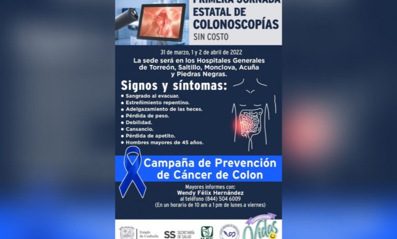 El Gobierno del Estado, a través de la Secretaría de Salud, alista la primera jornada de colonoscopías gratuitas a realizarse en los Hospitales Generales de Saltillo, Torreón, Monclova , Acuña y Piedras Negras.