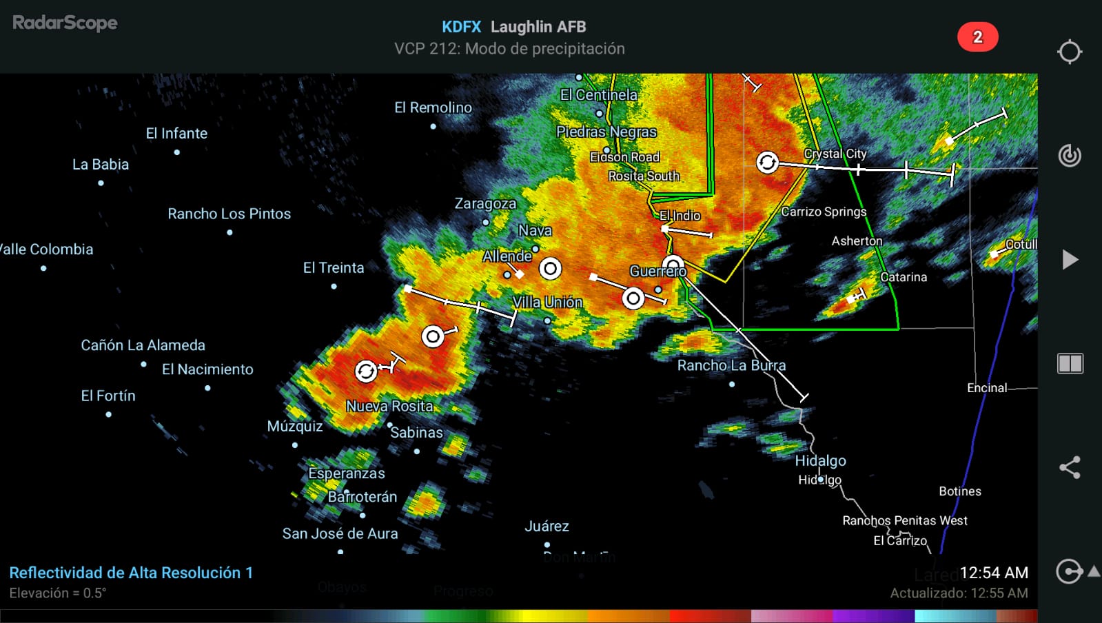 Según datos del Servicio Meteorológico Nacional se prevé que durante esta madrugada continúe el potencial de desarrollo de tormentas fuertes y posible desarrollo de tornados en el Norte de Coahuila.