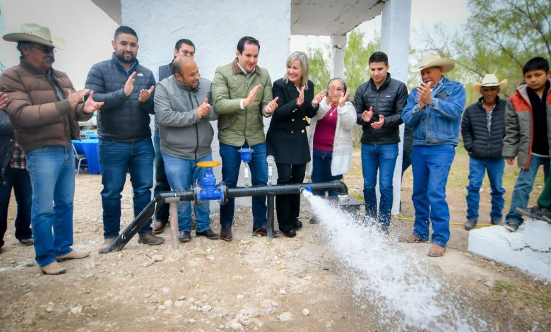 Inaugura obra de introducción de línea de agua potable que llevará el vital líquido a más de 300 familias, la Alcaldesa Norma Treviño Galindo junto a familias de la comunidad abrió la válvula que surtirá las tomas domiciliarias de esta zona rural.