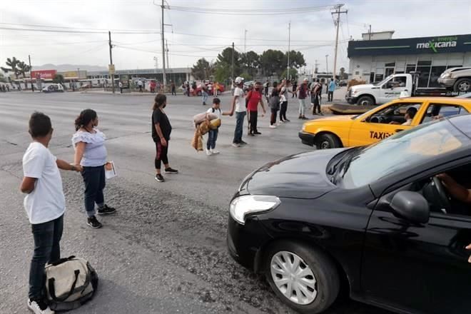 Molestos después de dos días «atorados» en Saltillo, un grupo de migrantes, niños incluidos, bloquearon el Periférico Luis Echeverría, justo frente a la Central de Autobuses, donde han pernoctado desde la noche del sábado.