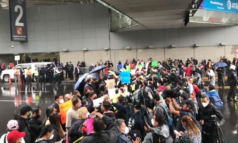 Padres de niños con cáncer bloquean el principal acceso a la Terminal 1 del Aeropuerto Internacional de la Ciudad de México (AICM) en demanda de medicamentos oncológicos.
