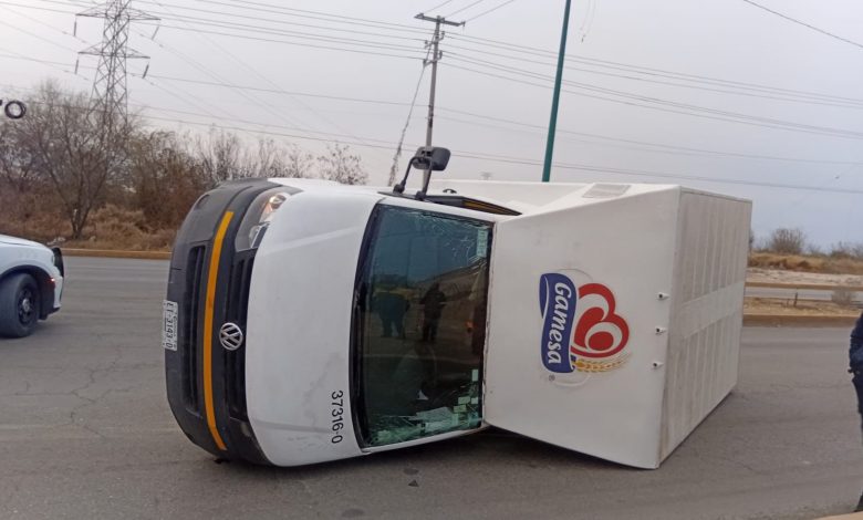 Redacción | Piedras Negras, Coahuila.- Un aparatoso choque con volcadura se registró la mañana de este viernes en el cruce de las calles A. Treviño y Mar de Cortés, donde un camión de reparto terminó volcado sobre su costado, sin que se reportaran personas lesionadas.