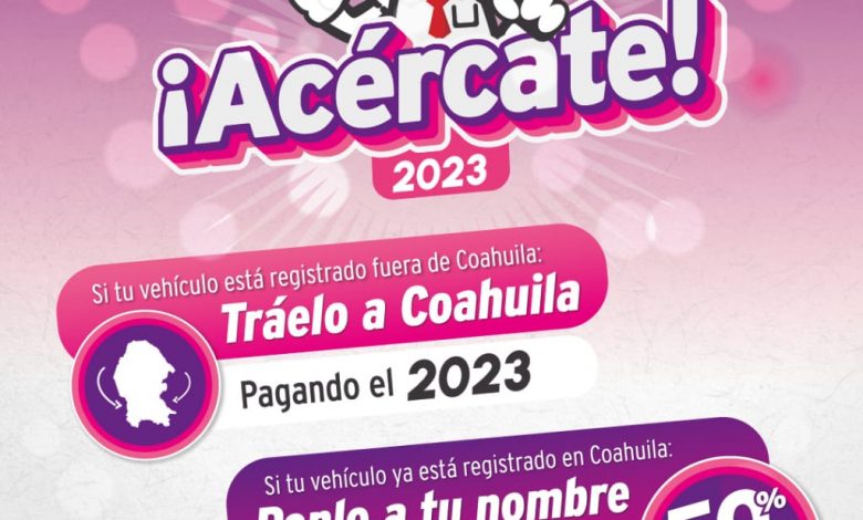 Mientras que en el caso de que tu vehículo esté registrado fuera del Estado, “Tráelo a Coahuila” y solo paga el Ejercicio Fiscal 2023, se condona al 100 por ciento de ejercicios anteriores.