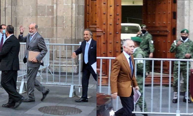 Casi tres horas después, se vio salir de Palacio Nacional a Carlos Slim, presidente honorario de Grupo Carso; Bernardo Gómez, vicepresidente ejecutivo de Grupo Televisa; Carlos Hank, presidente de Grupo Financiero Banorte; Ricardo Salinas Pliego, presidente de Grupo Salinas; Olegario Vázquez, director de grupo empresarial Ángeles; Daniel Chávez, fundador de Grupo Vidanta; Miguel Rincón, de Biopapel; Germán Larrea, de Grupo México, y Sergio Gutiérrez Muguerza, presidente de Grupo Deacero.