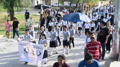 Realizan desfile y ceremonia cívica en la Delegación V. Carranza
