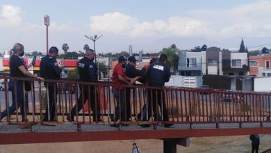 Policía y bombero rescatan a persona que intentó lanzarse de puente peatonal