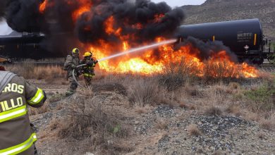 Incendio y explosión en uno de los vagones de un tren causo alarma al sur de Saltillo, donde elementos del…
