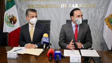 El alcalde de Saltillo, Manolo Jiménez Salinas, y el magistrado presidente del Tribunal Superior de Justicia, Miguel Felipe Mery Ayup,…