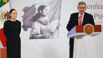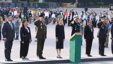 La presidenta Claudia Sheinbaum encabezó este viernes el izamiento de la Bandera Nacional a media asta en la plancha del…