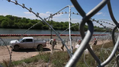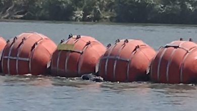 Una barrera flotante que fue instalada en el río Bravo con el propósito de disuadir a los migrantes de intentar…