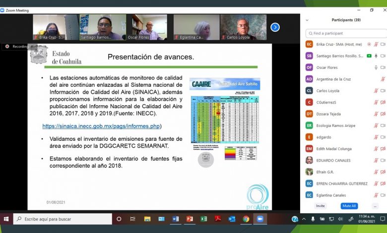 Como parte de los compromisos establecidos en las acciones del Programa para Mejorar la Calidad del Aire (ProAire) del Estado 2017-2026, el pasado 1 de junio se llevó a cabo de manera virtual a través de la aplicación ZOOM la primera reunión 2021 del Comité Núcleo del ProAire.