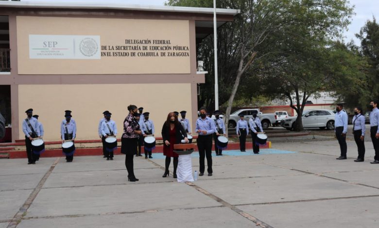 Ceremonia de incineración y abanderamiento de las Oficinas de Enlace de la SEP en Coahuila