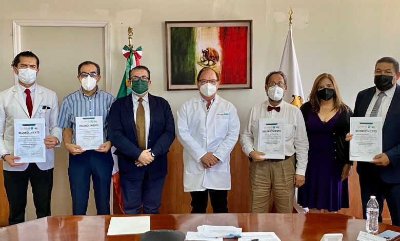 El titular de la dependencia, Roberto Bernal Gómez, entregó reconocimientos del Proyecto de Implementación de Acciones Básicas de Seguridad del Paciente a autoridades de la Clínica del Magisterio, el Hospital del Niño “Federico Gómez Santos”, el Centro de Salud Urbano de Ramos Arizpe y la Clínica 82 del IMSS.