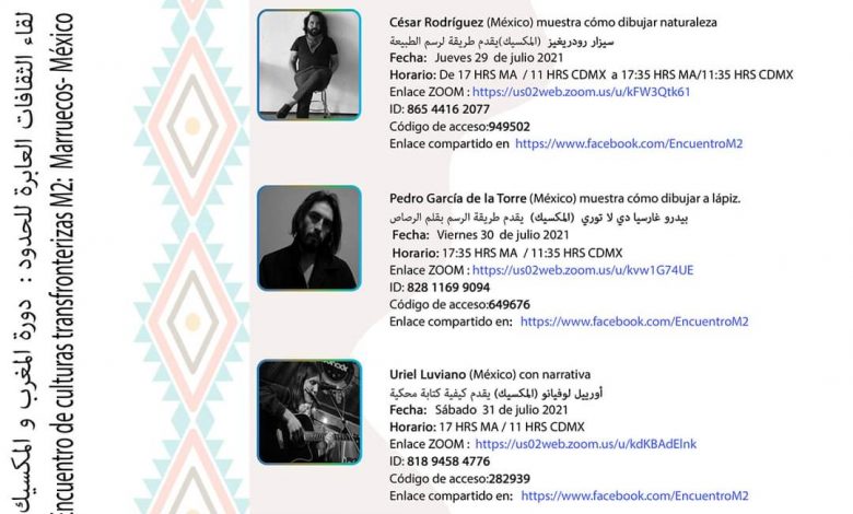 · La presentación literaria Al Maghreb y México La hospitalidad. Trashumancia como cultura emergente del siglo XXI, de la autora María Reyna Carretero Rangel. Será presentada por Abdelkhalak Najmi, el jueves 29 de julio a las 17:00 horas MA / 11: 00 horas CDMX.