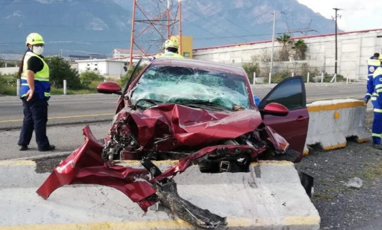 Dos hombres murieron y otro resultó lesionado, luego de que el automóvil en el que viajaban se estrelló contra el muro divisorio de la carretera a Saltillo, en Santa Catarina.