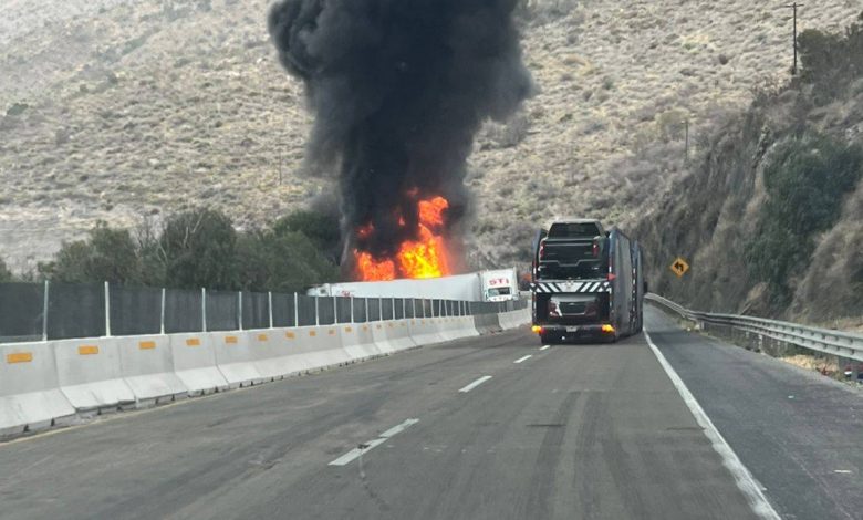 El percance se registró alrededor de las 16:00 horas y derivó en el incendio de al menos uno de los tráileres involucrados, lo que obligó a cerrar la circulación en ambos sentidos mientras se realizaban las maniobras para controlar el fuego y evitar mayores riesgos a los automovilistas que transitaban por la zona.
