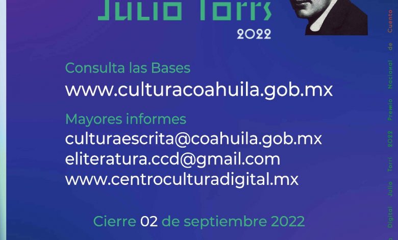 Con el propósito de promover la lectura y estimular la escritura del relato breve, así como fomentar la creación, experimentación y producción de literatura digital contemporánea, la Secretaría de Cultura de Coahuila, en colaboración con el Centro de Cultura Digital de la Secretaría de Cultura Federal, abre la convocatoria al Premio Nacional de Cuento Breve y Literatura Digital Julio Torri 2022.