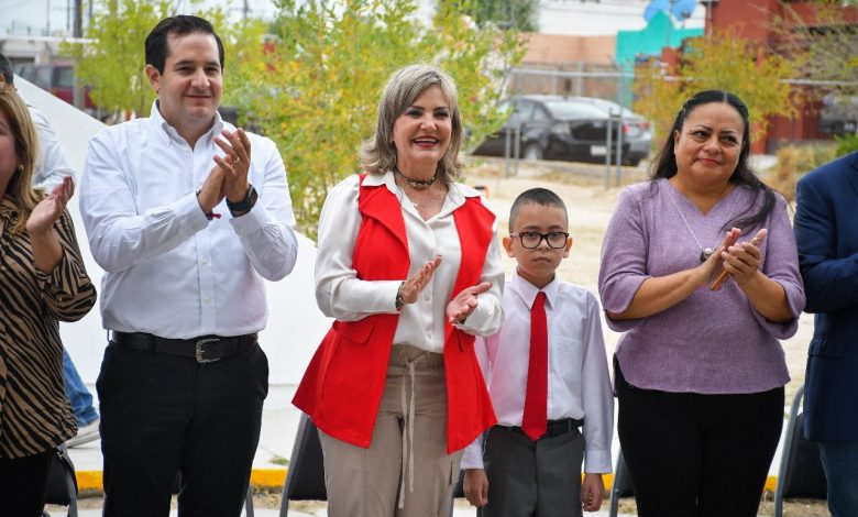 La Presidenta Municipal Norma Treviño Galindo encabezó una ceremonia de honores a la bandera nacional en la Escuela Primaria Profesor Hermiro Jiménez Aguirre, donde destacó los excelentes resultados obtenidos en el programa «Éntrale a la Educación Peso a Peso», con la instalación de más de 100 aparatos de aire acondicionado en más de 60 planteles de educación básica, tan solo en lo que va del presente 2023.