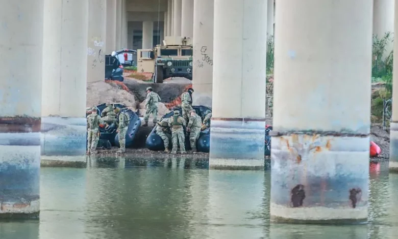 Por el lado de Texas, se hicieron presentes el Ejército Norteamericano, con lanchas debajo del Puente Internacional Dos.