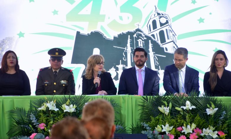 La servidora pública estatal asistió al evento protocolario, que presidió el alcalde Ramiro Durán García, con el que se conmemoró el nacimiento de esta población de la Región Sureste de Coahuila.