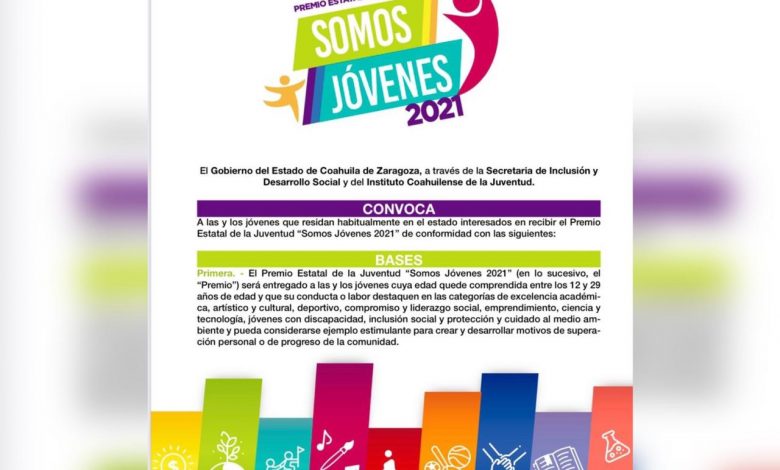 Coahuila lanza convocatoria del Premio Estatal de la Juventud ‘Somos Jóvenes 2021’