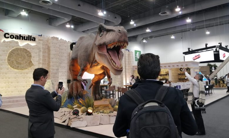 Coahuila ofrece en esta edición un stand inspirado en las Minas de Mármol del Pueblo Mágico de Cuatro Ciénegas; además cuenta con el enorme dinosaurio animatronic, que siempre ha sido la sensación del Tianguis Turístico.