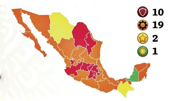 En el nuevo semáforo epidemiológico vigente del 18 al 31 de enero, hay 10 estados en rojo, entre ellos Coahuila, 19 en naranja, dos en amarillo y sólo Campeche en verde, dio a conocer la Secretaría de Salud. Las autoridades detallaron que Chiapas retrocedió de verde a amarillo, donde también se encuentra Chihuahua.