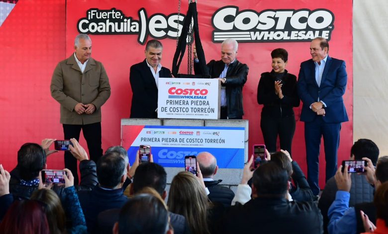 El gobernador Miguel Ángel Riquelme Solís, acompañado por Román Alberto Cepeda González, Alcalde de Torreón, colocó la Primera Piedra de Costco en esta ciudad, donde se generarán 350 empleos directos y más de mil indirectos, con una inversión de 60 millones de dólares.
