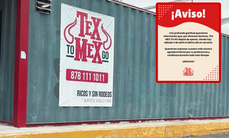 Redacción | Piedras Negras, Coah.- El cierre de negocios en Piedras Negras continúa marcando una tendencia preocupante, luego de que este fin de semana el restaurante Tex Mex To Go anunciara el fin de sus operaciones tras menos de un año de actividad.