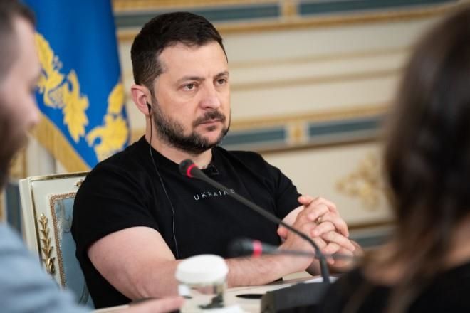 No es fácil llegar a Zelensky. Hay que pasar por más de una decena de filtros de seguridad y detectores de metales. Hay que subir por escaleras con ventanas tapiadas, bordear muros de contención camuflajeados, recorrer cuarto tras cuarto vacío o con algún mueble solitario, desvencijado. Hay que dejar atrás el reloj, el celular y hasta la pluma para finalmente entrar a un salón que despliega la bandera ucraniana. Entra él y noto que ha variado un poco su atuendo tradicional de estos tiempos. En lugar de la camiseta verde olivo, ahora porta una negra que simplemente dice «Ukraine», en letras blancas, sencillas. El país representado por un hombre que fue cómico, pero ahora sonríe poco. Da la mano, saluda, y habla con una seriedad poco mitigada. Carga el peso de una invasión inesperada, una conflagración no buscada, una guerra que él define como la de todos.