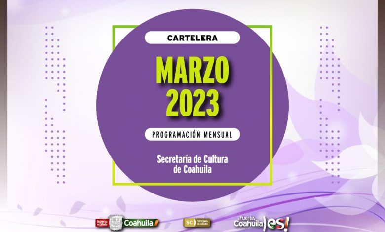 “La programación completa se encuentra en nuestra cartelera del mes de marzo, la cual puede descargarse o consultarse en línea en nuestra página web, en la sección cartelera, ubicada en: https://coahuilacultura.gob.mx/…/cartelera-marzo23.pdf”.