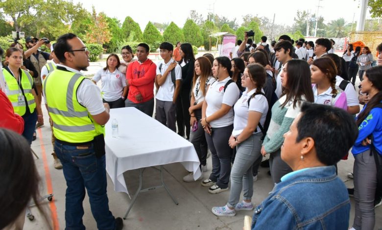 Estuvieron presentes Jesús Manuel Espinoza Montelongo, director del plantel; Roberto Torres Ríos, director de Seguridad Pública; Armando Vital Trejo, coordinador de Bomberos; Luis Alfredo Reyes Mendoza, coordinador de Protección Civil y Stephanie Selene Jiménez Villarreal, sub coordinadora administrativa de Protección Civil.