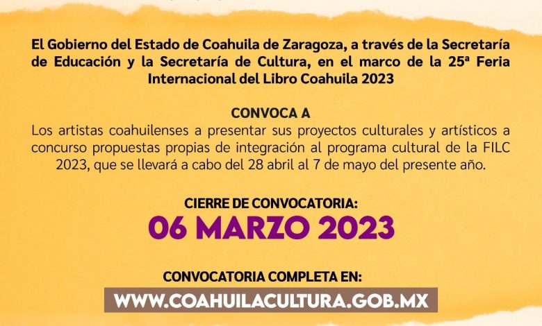 Convoca Coahuila a escritores y artistas a participar en la FILC 2023
