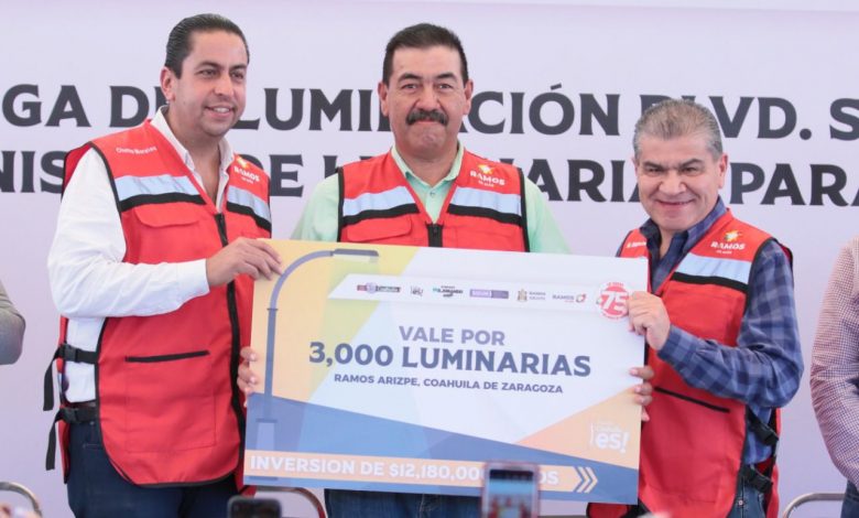 Más tarde, Miguel Riquelme y José María Morales inauguraron la iluminación del bulevar Salto del Agua, vialidad que conecta a Ramos Arizpe con Saltillo y Arteaga; además entregaron más de 3 mil luminarias led de 60 wats que se colocará en vialidades de todo el municipio, así como dos camiones de 3.5 toneladas para atender los servicios primarios que proporciona el Ayuntamiento.